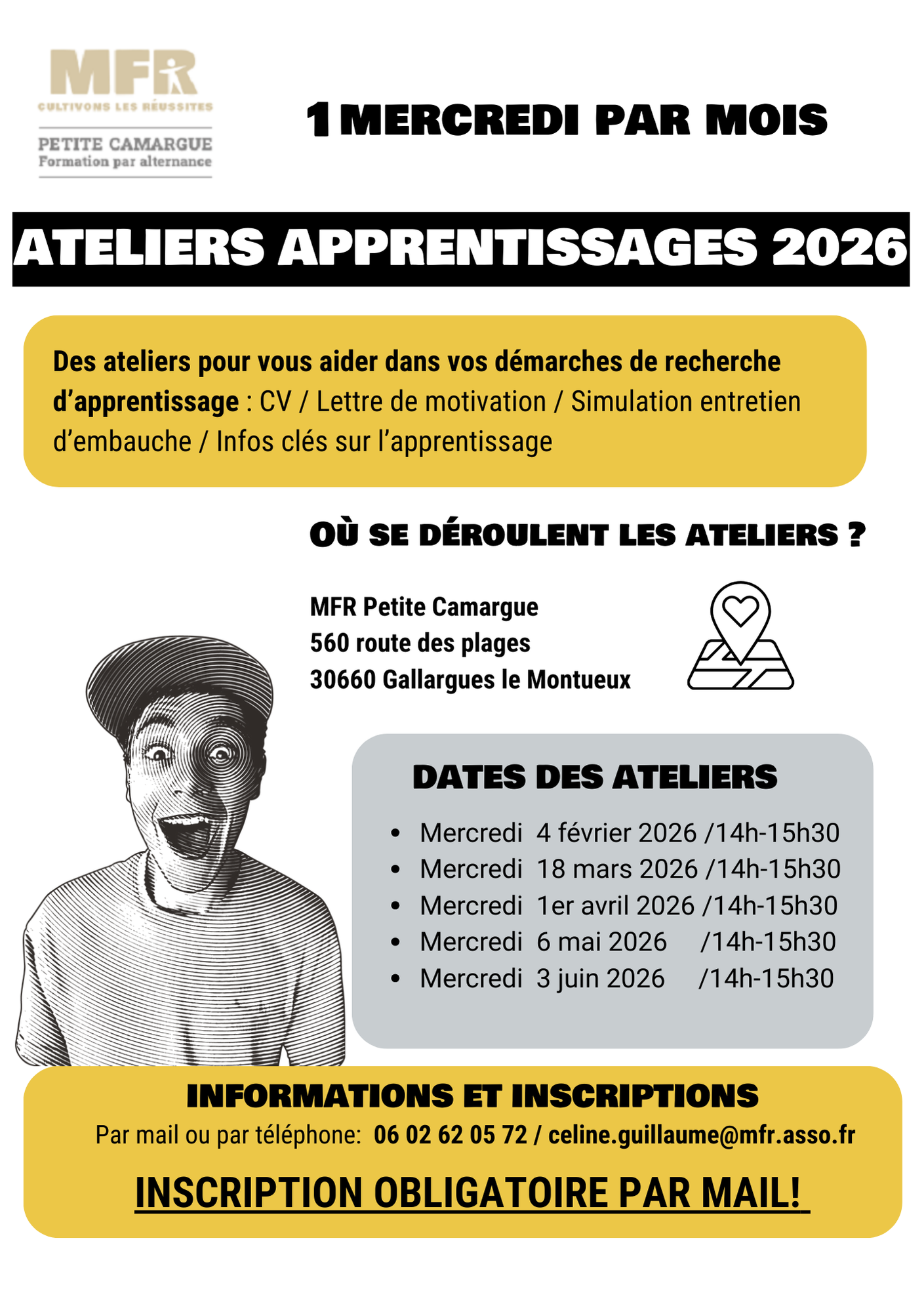⚠️ L’inscription est obligatoire par téléphone ou par mail pour participer aux ateliers apprentissage.