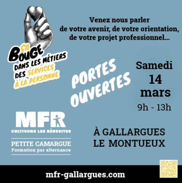 élèves et à leurs familles de découvrir la pédagogie des Maisons Familiales Rurales ainsi que les formations proposées par la MFR Petite Camargue, notamment :